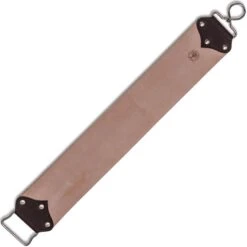 Extra breites Premium-Rindslederarmband mit vernickelten Stahlschlaufen zum Aufhängen und Halten. Inklusive Gürtel zur Behandlung von Gürtelleder. Fläche: 8,0 x 37,5 cm.