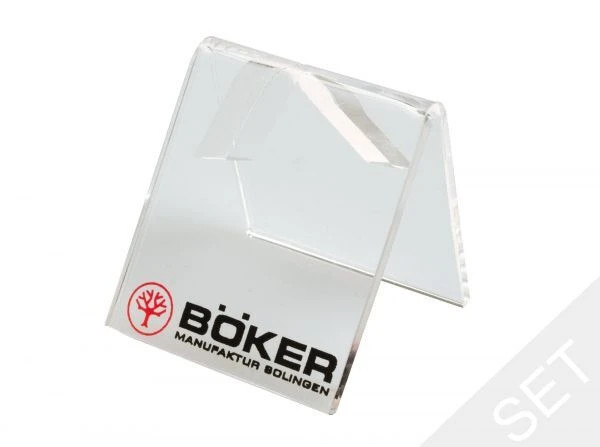 12-teiliges Acryl-Messerhalter-Set mit Böker-Logo für Taschen- oder feststehende Messer.