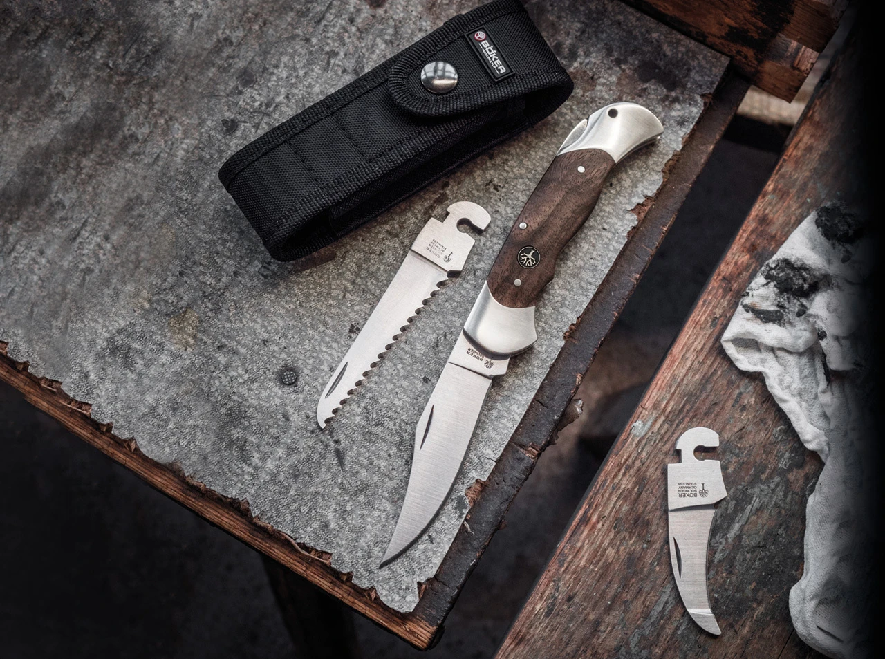 Das Böker Optima Set II Jagdmesser ist sicherlich kein gewöhnliches Messer. Die Klingen der Optima-Serie sind generell austauschbar, so dass das Messer schnell an die jeweiligen Anforderungen angepasst werden kann. Das Wechselsystem macht aus einem einfachen Messer ein praktisches Multifunktionswerkzeug.