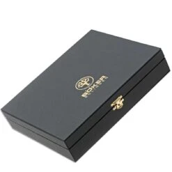 Die empfindliche und hauch-feine Wate (Schneide) des Rasiermessers richtet sich bei ausreichend langer Ruhezeit weitgehend von selbst wieder auf. Lässt man der Schneide nach der Rasur also ausreichend Zeit sich zu erholen, minimiert man den Pflegeaufwand und erhöht die Lebensdauer des Rasiermessers. Vom 19. Jahrhundert bis in die 30er-Jahre waren daher Wochensätze verbreitet in denen sieben baugleiche, mit den einzelnen Wochentagen gekennzeichnete Rasiermesser in einer Holzkassette zusammen-gefasst waren. Mit der Böker Wochensatz-Kassette kann der Liebhaber und Sammler sich nach und nach seinen eigenen Wochensatz je nach Vorliebe einheitlich oder aus verschiedenen Modellen zusammenstellen. Für größere Unempfindlichkeit gegenüber Feuchtigkeit haben wir bewusst auf die Verwendung von Echtleder verzichtet und das Holz stattdessen mit hochwertigem synthetischem Leder in aufwen- diger Wickeltechnik innen und außen kaschiert. Die Stege mit den sieben Rasiermesseraufnahmen sind zur schonenden Aufbewahrung weich und rutschfest gepolstert. Mit diagonalem Ripsband im Deckel und dekorativen Beschläge aus Messing. Lieferung ohne Rasiermesser. Maße: 220 mm x 175 mm. Die Innenhöhe beträgt 30 mm.