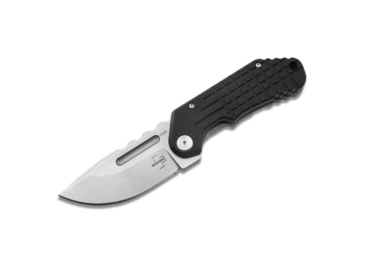 Die Klinge besteht aus D2-Werkzeugstahl mit einem strengen Stonewash-Finish und einer markanten Hohlkehle auf beiden Seiten, die zum Öffnen des Messers dient. Die Rillen auf dem Klingenrücken versprechen eine sichere Daumenauflage für harte Schneidarbeiten. Die Klinge wird durch einen zuverlässigen Framelock-Verschluss in geöffneter Position gehalten. Der wohlgeformte Griff aus G10 und rostfreiem Stahl liegt stets sicher in der Hand. Die Schnalle übernimmt die Griffstruktur, während das Lanyard-Loch den Tragekomfort erhöht.